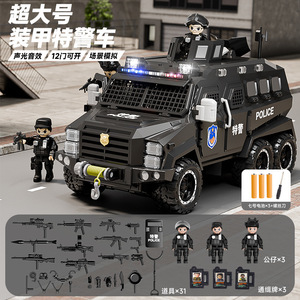 超大装甲特警车【高配版】7公仔+31场景配件+可喷雾/炮弹可发射