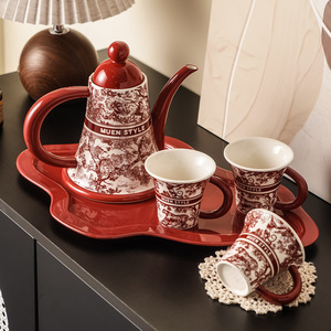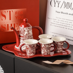 赤い中世スタイルのジャングルウォーターセット高価値セラミックティーセットギフト新年結婚式新築祝いギフトボックス
