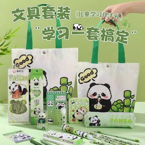 かわいいパンダのキャンバスバッグ文具セット、小学生向けの実用的な新学期ギフト、高見えする幼稚園の新学期ギフト