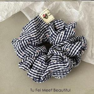 文学的な小さな花のポニーテール、田園的な春夏の気質、BM生地、耐久性のあるヘアアクセサリー、チェック柄のヘアゴム、クールで多用途、新鮮です。