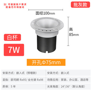 75开孔7W-哑白-预埋款