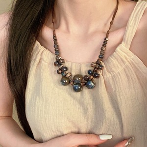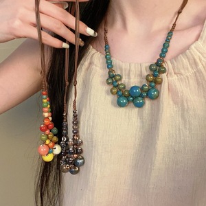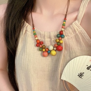 新しい中国風のカラフルなセラミックビーズネックレス女性のエスニックスタイルのパーソナライズされた編組鎖骨チェーンニッチレトロ多用途アクセサリー