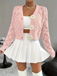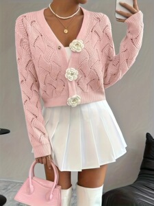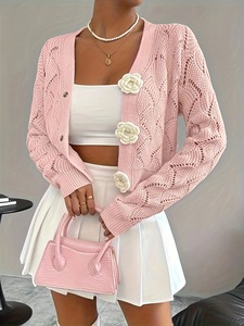 ヨーロッパとアメリカのニット薄いカーディガンセーター女性のための春のへそ出しデザイン甘い小さな香りショート立体フラワージャケット