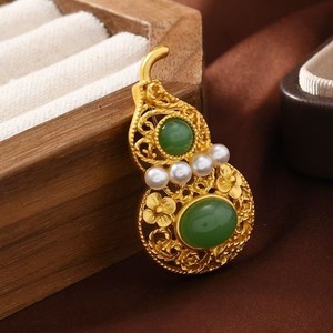 新しい象嵌ひょうたん古代風ブローチ、高級コサージュ、多機能合金ジュエリー、露出防止ブローチ、古代風