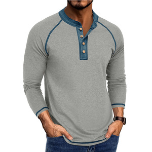 ヨーロッパとアメリカのメンズ長袖ラウンドネックTシャツ外国貿易メンズボトリングシャツ秋冬メンズヘンリーシャツAmazonホットスタイル