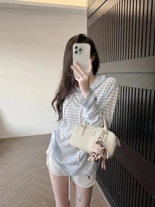 ラフストライプ日焼け止めフード+ショーツ