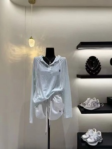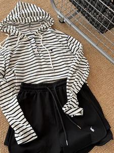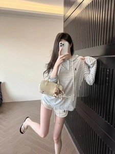 高バージョン RL ラフホース刺繍ストライプフード付き日焼け止め空調シャツ + ショーツスーツ長袖カジュアルで快適