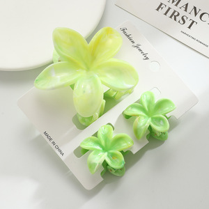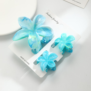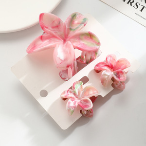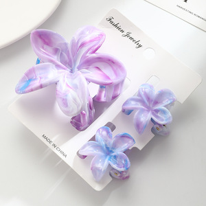 跨境欧美热销双色鸡蛋花发夹套装紫荆花朵抓夹女度假后脑勺鲨鱼夹