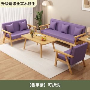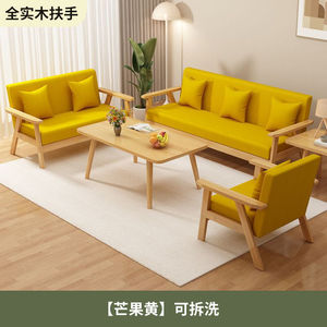 布艺沙发茶几组合卧室出租房新款清漆实木沙发办公室简易双人沙发