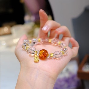 天然白水晶手串女2025年原创设计款搭配花珀圆珠高级感女款批发