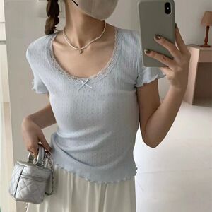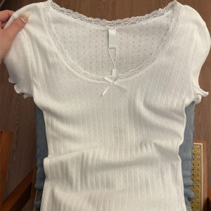 ホワイトピュアデザイアスイートレーススリムタイトボトムレディースサマーショルダーショートインナー半袖Tシャツトップ