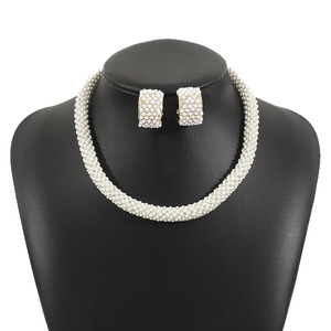 N12747 クロスボーダーフレンチスタイルエレガントパールイヤリングネックレスファッション宴会結婚式ブライダルジュエリーセット