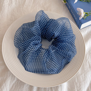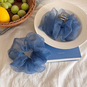 ネイビーブルーチェック柄シルクサテンヘアクリップ女性用 2025 新しいスタイルの髪の量が多いうち頭の後ろのサメクリップファッションヘアピンヘアアクセサリー