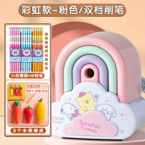 レインボースタイルピンク【倍速鉛筆削り-【優先】緑軸2B鉛筆10本+フルーツ消しゴム3本