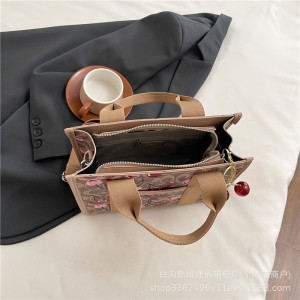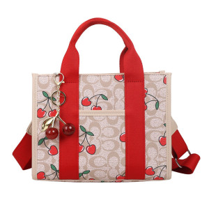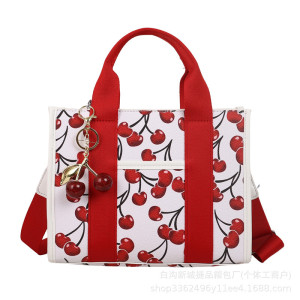 クロスボーダートートバッグ 2025 新しいレディースバッグ大容量エンボスチェリーハンドバッグトレンディなファッション通勤クロスボディバッグ