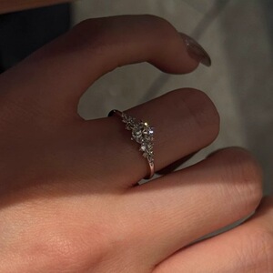 女性用フレンチフラッシュダイヤモンドジルコンリング、色あせしない、優しい気質、軽い高級感、ニッチなデザイン、ハイエンドで多用途なオープンリング