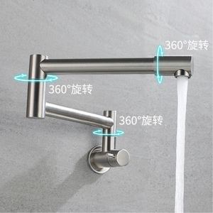 跨境不锈钢厨房水龙头折叠万向旋转入墙式加长单冷厨房水龙头批发