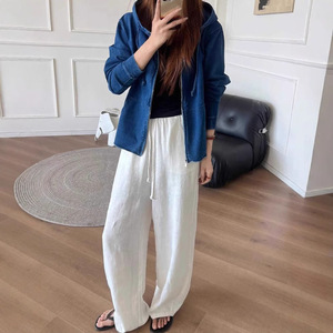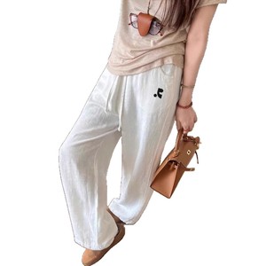 Rr カジュアル ルーズ 通勤 リネン サンドウォッシュ シワ加工 テクスチャー リボン 巾着 カジュアル ルーズ 通勤 軽量 ストレート パンツ