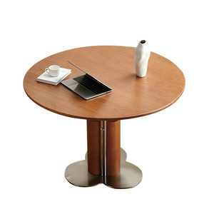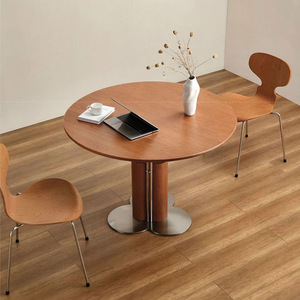 北欧实木圆桌面复古风樱桃木饭桌大小户型飞鸟集圆餐桌子