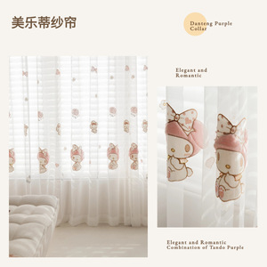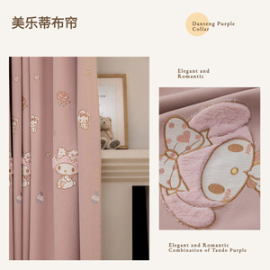 儿童房雪尼尔绣花窗帘卡通女孩公主房粉色美乐蒂遮光窗帘纱帘批发