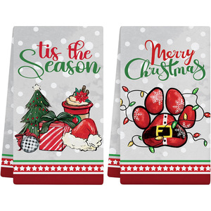 クリスマス雑巾 JIT ドロップシッピング TEMU クロスボーダー クリスマスキッチンディッシュタオル プリントクリスマス雪だるまハンドタオル