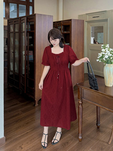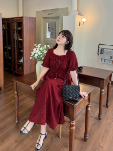 2025 夏の新しいドレスファットシスター大きいサイズ 100kg 中空スクエアカラーレースアップドレス 8981