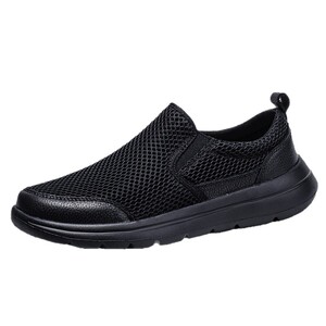クロスボーダーの新しい大きいサイズのメンズメッシュシューズ、通気性と快適なスリッポンレイジーカジュアルシューズ、男性用の軽量アウトドアウォーキングシューズ