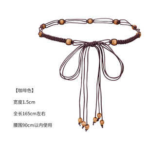 女性用ベルトアクセサリー、スカートとセーター付きのボヘミアンエスニックスタイルの織りタッセル、ブラウンウエストチェーンとウエストロープ