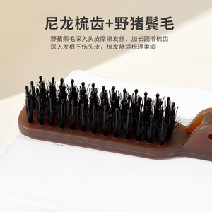 ポータブル折りたたみ猪毛コーム、ポータブル旅行用メイクアップスタイリングミラーコーム、一体型ふわふわスタイリングコーム