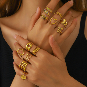 ヨーロッパとアメリカのステンレス鋼の愛のオープンリング女性の非退色パーソナライズされたヒップホップシンプルな幾何学的なチタン鋼リング卸売