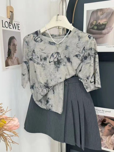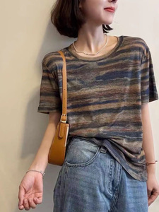 复古夏季新款t恤洋气小众短袖上衣撞色天丝T恤