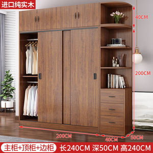 無垢材引き戸ワードローブホームベッドルームモダンシンプル子供用大型ワードローブ経済的な賃貸住宅収納キャビネット