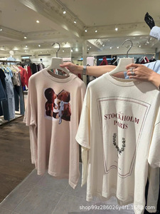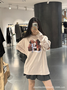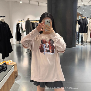 Nanyou 品質 25SS 初秋レトロ柄プリントルーズフェイクツーピース長袖メッシュ Tシャツ男性と女性用