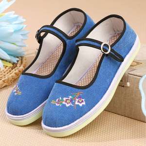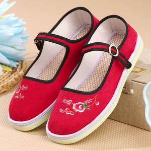 老北布鞋新款女士灯芯绒绣花女鞋子手工一脚蹬千层底结婚布单鞋