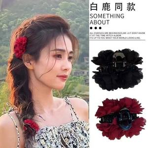 ローズフラワークリップヘアピンフラワーフリンジサイドクリップ7cmフレンチレイジーハーフタイヘアピン