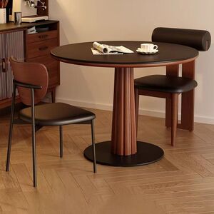 中世スタイルの無垢材スレートラウンドテーブル北欧レトロホワイトホーム小さなアパートのダイニングテーブルラウンドレストランダイニングテーブル