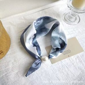 2025 新作春夏薄型パールネックレス磁気バックル怠惰なシルクスカーフ女性のペンダントスカーフ鎖骨チェーンスカーフ