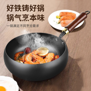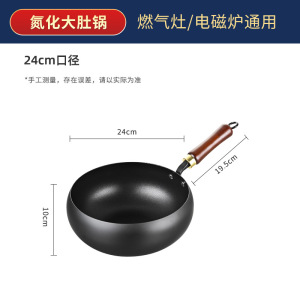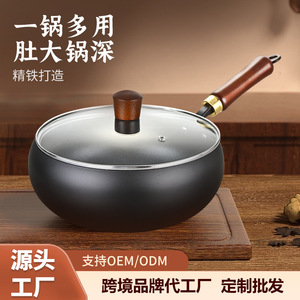 本物の昔ながらのノンスティック中華鍋、家庭用調理用ノンコーティング鍋、大腹鍋、精製鉄鍋、ノンスティック鍋