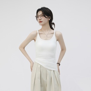 胸パッド、細いショルダーストラップ、ラウンドネック、女性用サスペンダー、ショートスタイル、美しい背中、ブラジャーなし、へそ出し、ノースリーブ、I字型ベスト、アウターウェア