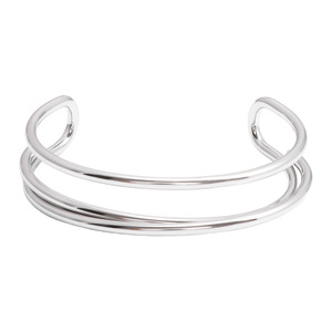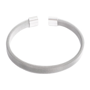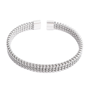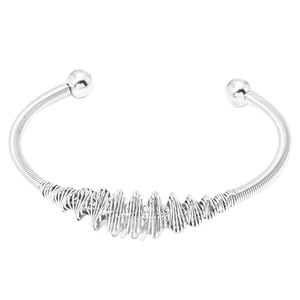スチールカラーの幾何学模様のスプリングCシェイプブレスレット