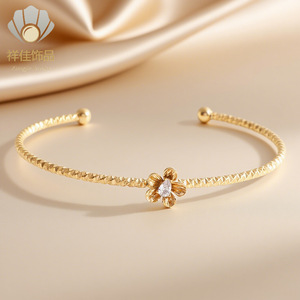 ゴールデン五葉のクローバー ジルコン ブレスレット (真空電気メッキ 18K ゴールド)