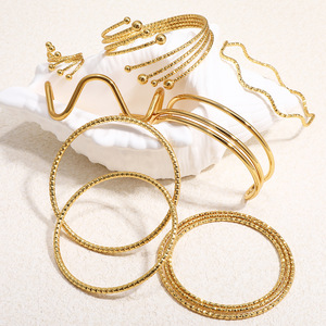 ゴールドの丸線ブレスレット 3 本 (外径 64mm)