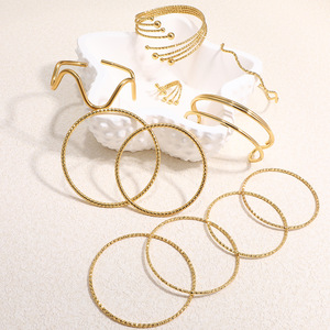 ゴールデン古代ラウンドプレーンフープブレスレット