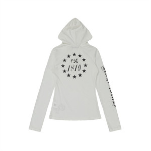 デジタル五芒星プリントフード付きブラウスレディース春夏カジュアルアメリカンストリートスタイルハーフカーディガン長袖Tシャツ