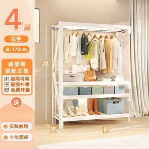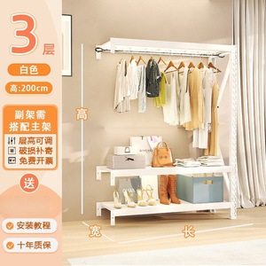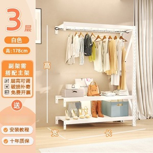 ホワイト三段高さ 1.78m サブフレーム [物干しレール*1+防塵カーテン*1含む]