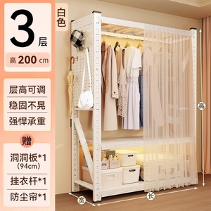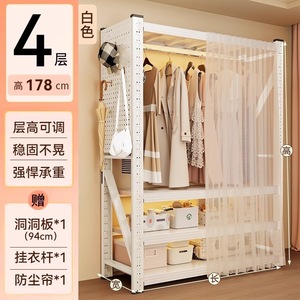 オープンハンガー寝室収納キャビネット簡単組み立て床置き収納ラックコートラック穴あきボード棚ワードローブ
