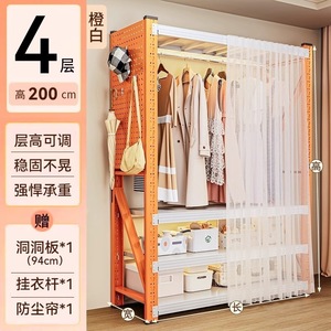 オレンジと白の4層高さ2mメインフレーム[ハンガーレール*1+防塵カーテン*1+有孔ボード*1を含む]