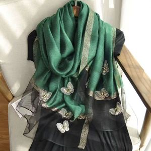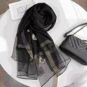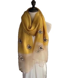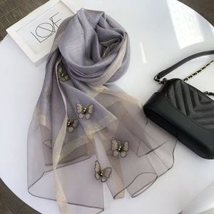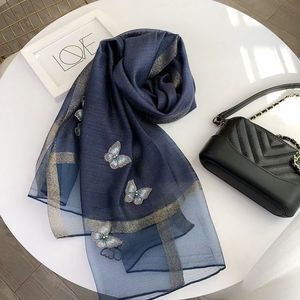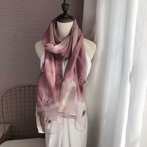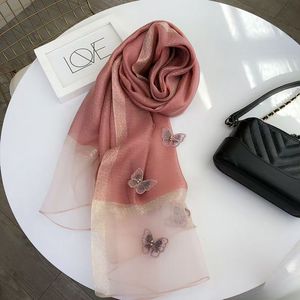 秋と冬の韓国シルクスカーフ女性用模擬シルクファッション立体蝶刺繍薄いガーゼスカーフ母親のギフト