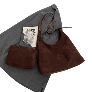 2025新款麂皮绒水桶包大容量单肩腋下托特包复古通勤百搭子母包