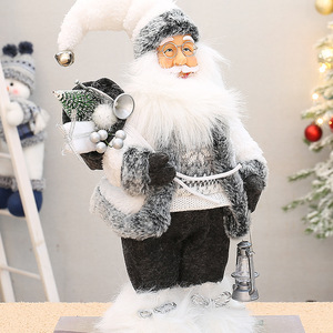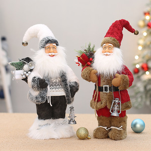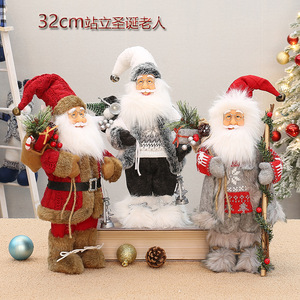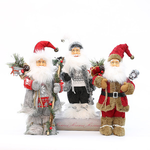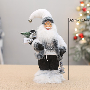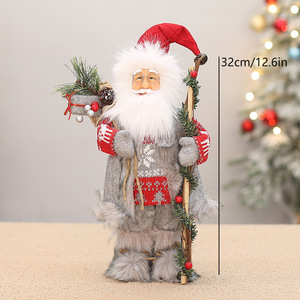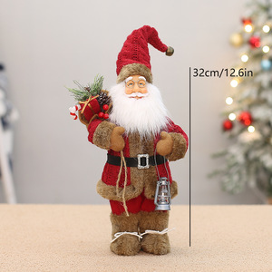 新しい 12inch スタンディングサンタクロースの装飾品、ギフトバッグを背負って長い豪華なスノーブーツを履いています。